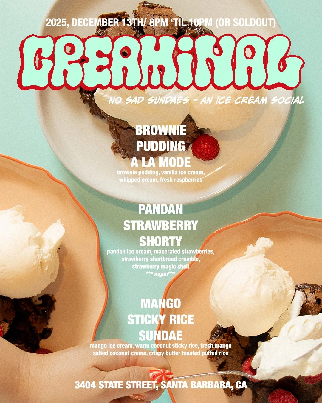 No Sad Sundaes is a weekly ice cream social featuring a rotating menu of specially crafted sundaes by Creaminal. The ice cream social takes over Your Choice Restaurant every Saturday night and starts immediately after the restaurant closes. Visit our instagram page for the current sundae menu.